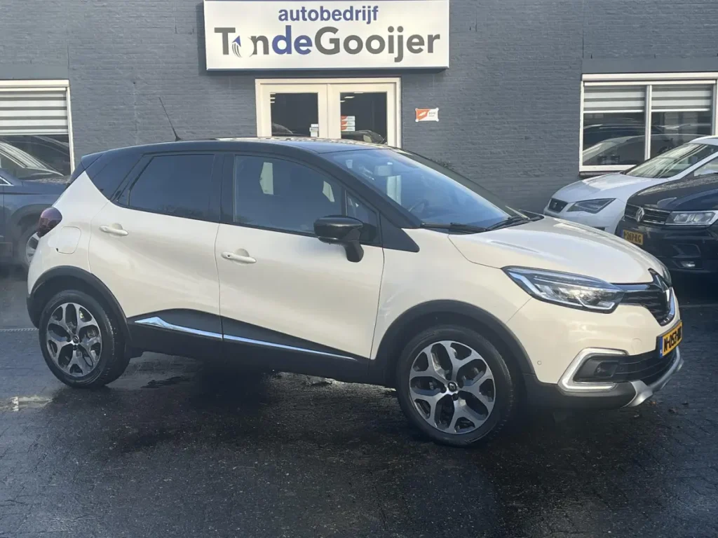 Basiskleur: wit / zwartEen keurige Renault Captur 1.2 TCE Automaat. Voorzien van veel luxe waaronder: climate control, cruise control, parkeersensoren voor en achter, elektrisch inparkeersysteem, navigatie, achteruitrijcamera, zwart dak/spiegels, 17-sportvelgen, dodehoeksensoren, Android Auto, donker getint glas achter enz…In maart 2024 bij ruim 96.000 km is er een nieuw motorblok geplaatst t.w.v. 6.500 euro. De factuur hiervan is aanwezig. Welkom voor een bezichtiging!